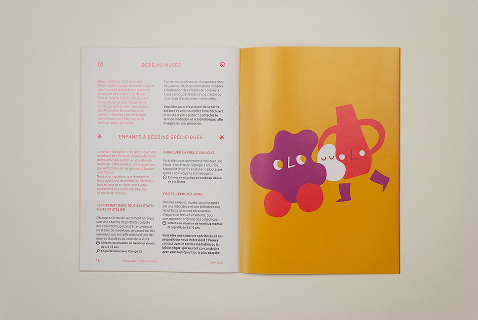 Livret d'activités 2019-2020 Conception graphique et illustrations du livret d'activités pédagogiques du musée — brochure (24 p., 15 × 21 cm), 2019 — Musée d'art et archéologie, Valence