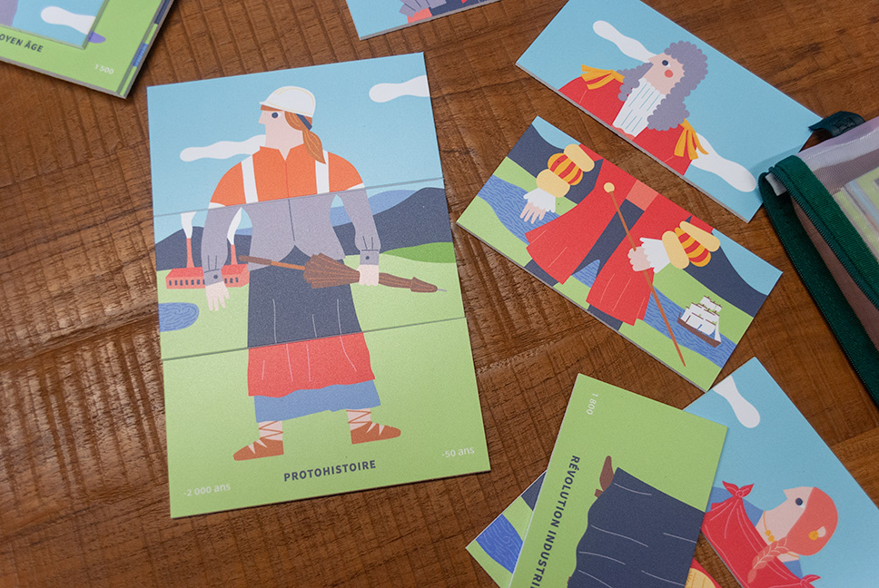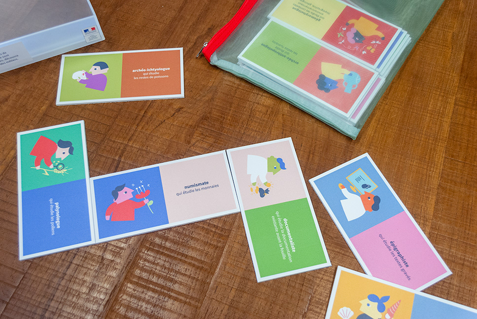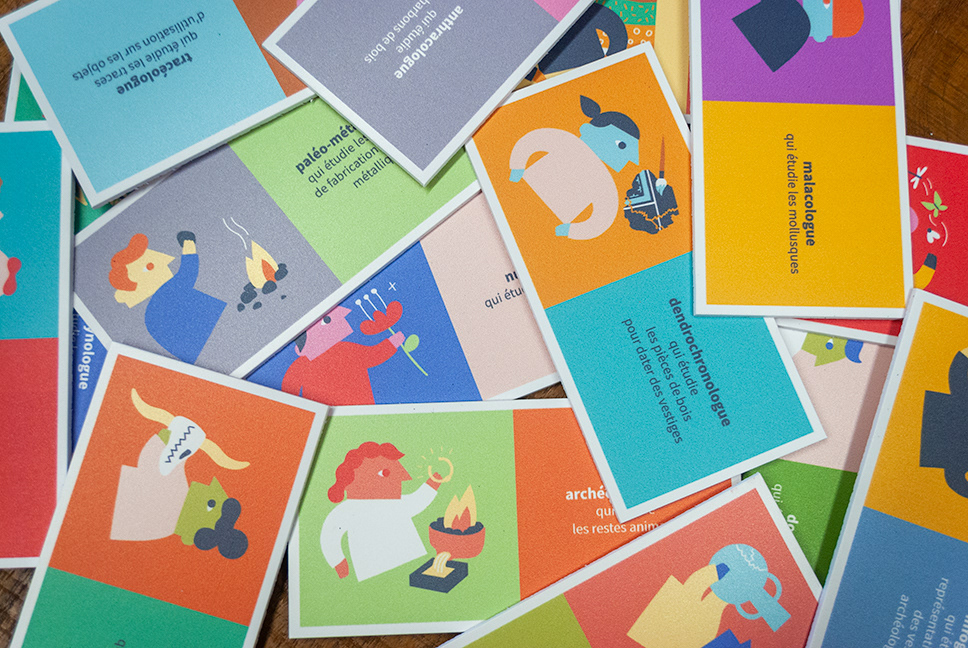 Mallette pédagogique, l'archéologie en kit Conception graphique d'une mallette sur l'archéologie. Avec Ariane Réquin (conception et médiation culturelle, Lyon) — 4 modules de jeu, 2019 — Service de l'archéologie Auvergne-Rhône-Alpes, Lyon