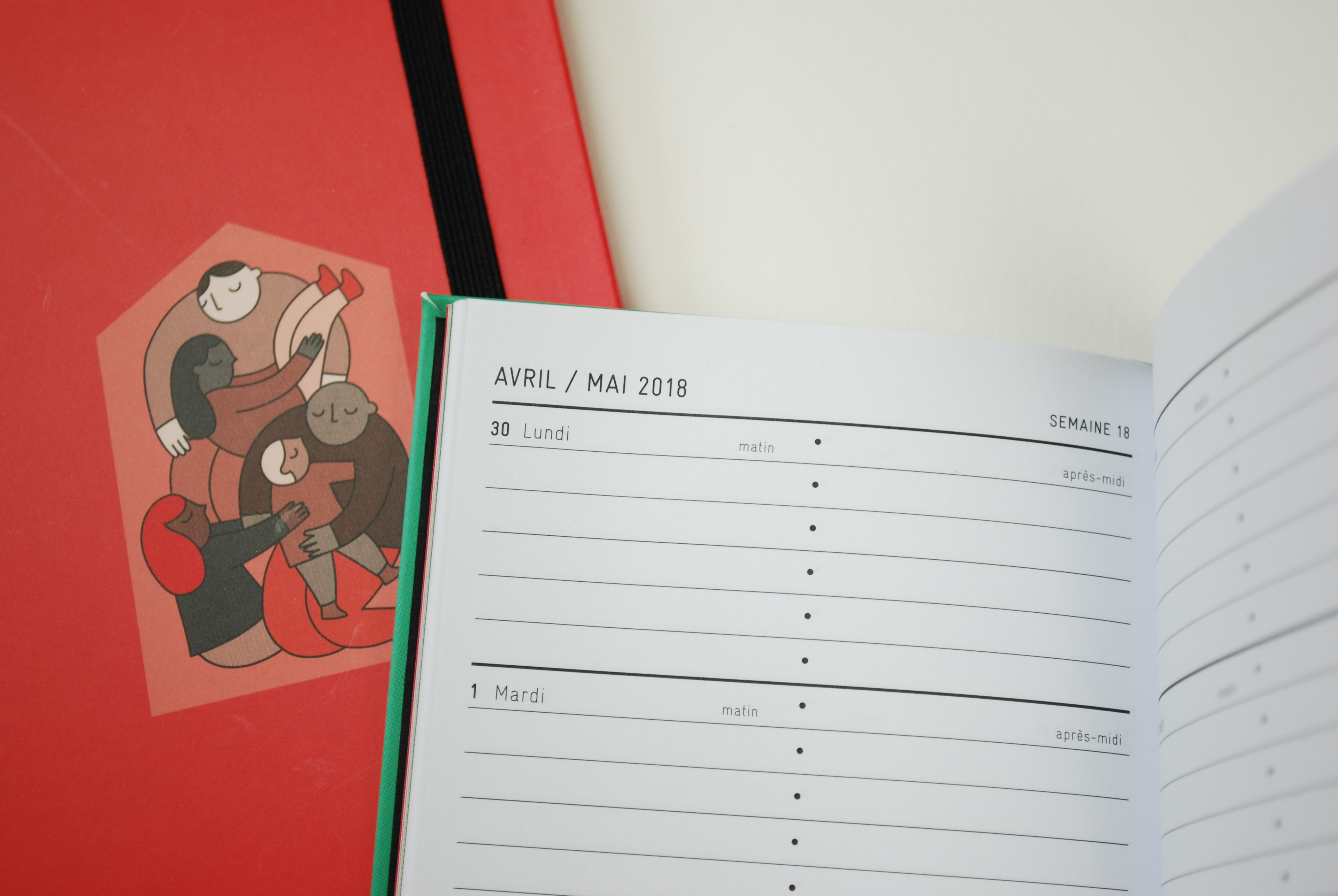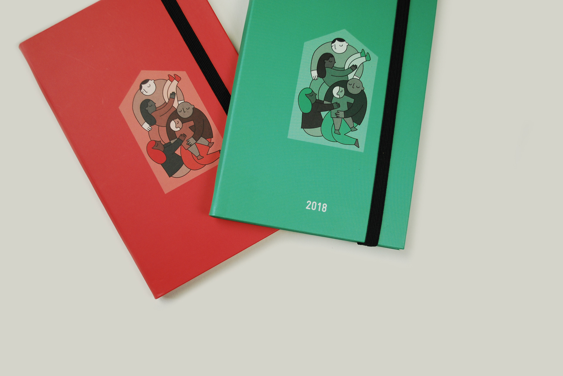 Agenda et carnet de notes 2018 Mise en page et illustrations de l'agenda et du carnet de notes 2018 de l'association — 2 livrets (144 p., 9 × 14 cm), 7 illustrations, 2017 — La Cimade, association de solidarité active avec les migrants, Paris