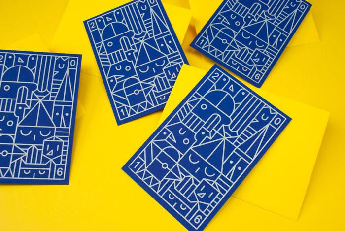 Carte de vœux 2016 Conception et fabrication en édition limitée — 100 cartes postales (10 × 15 cm, impression gocco), 2015 — projet personnel